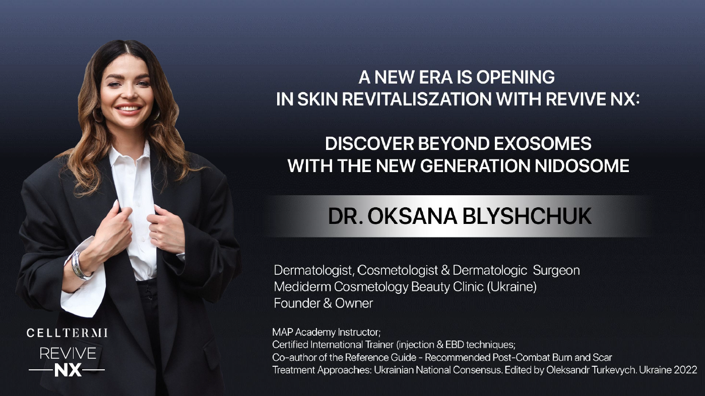 This webinar, < A New Era Is Opening in Skin Revitalization with CELLTERMI REVIVE NX: Discover Beyond Exosomes with the Next-Generation Nidosome > led by Dr. Oksana Blyshchuk from Ukraine, was held for 43 overseas medical professionals who mainly use CELLTERMI REVIVE NX.